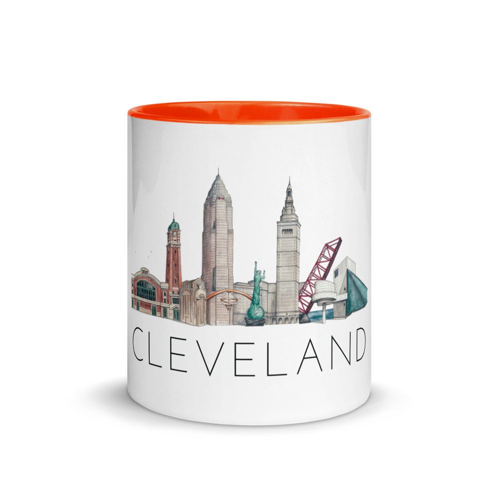 The image is a unique illustration you won’t find anywhere else, featuring some of Cleveland’s most famous landmarks. The image on this mug is centered on the front of the mug.